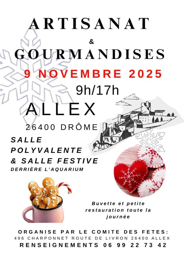 Le Comité des Fêtes d'Allex vous convie à son traditionnel Salon Artisanat et Gastronomie ce dimanche 9 novembre.
