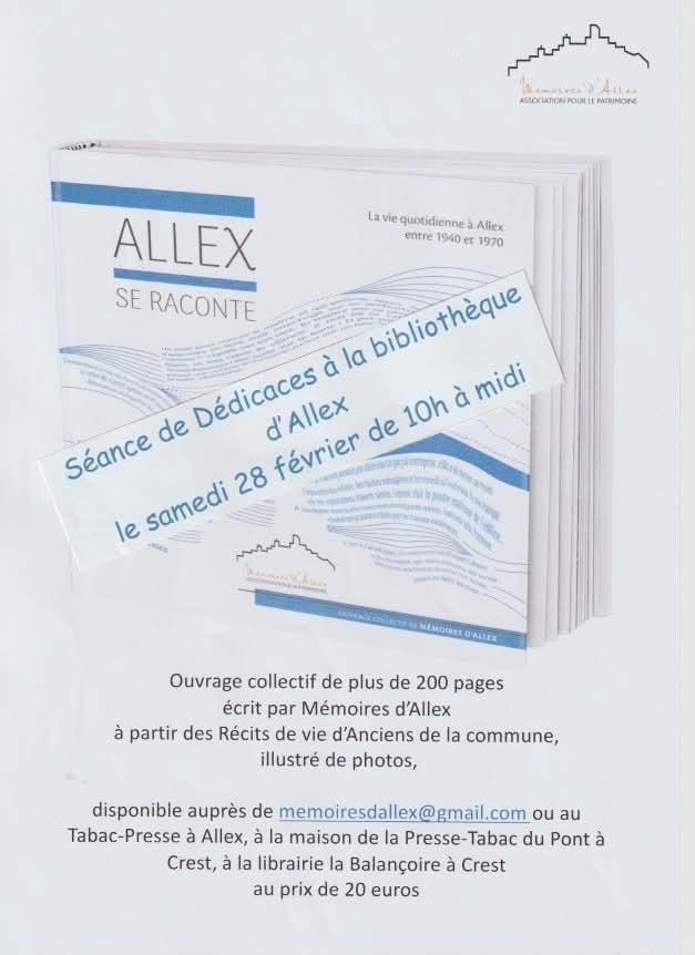 Disponible auprès de memoiresdallex@gmail.com ou au tabac presse à Allex, à la maison de la presse-tabac du Pont à Crest,